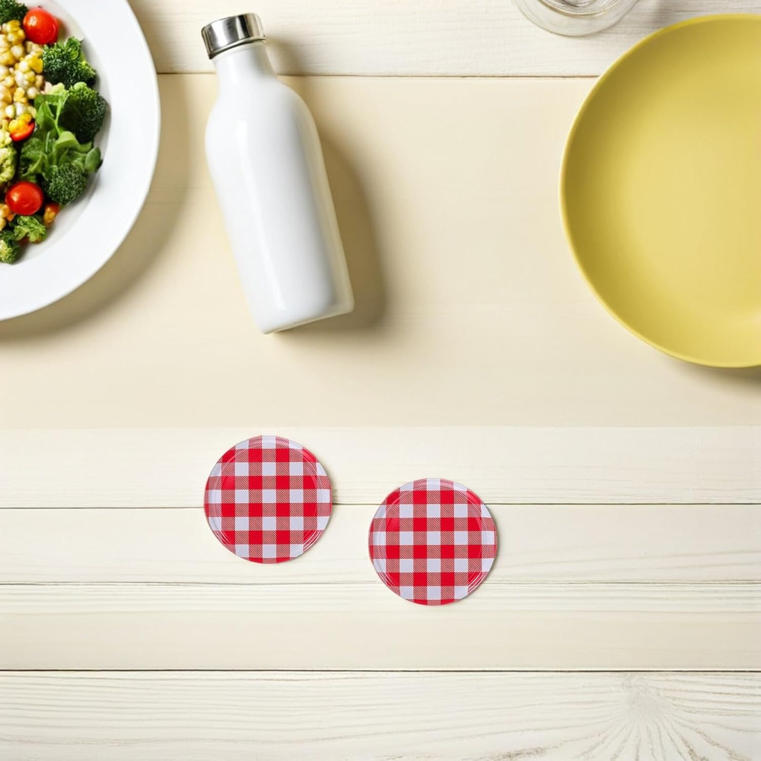 Package List 100 x Mason Jar Lids Characteristics -Product Info:Mason jar lids -Size:7.20X7.20X1.00cm/2.83X2.83X0.39in storage caps for canning -Easytotwist design: features a userfriendly design that allows and seniors to open and close jars with ease, enhancing daily convenience screw twist jar covers - iron material: made from sturdy iron, these lids resist wear and tear, offering longterm performance and reusability screw twist canning lids -Material:Iron jam jars lids -Universal compatibility: designed to fit most glass jam jars and mason jars, making it easy to replace old or damaged lids effortlessly replacement jar lids -Color:Red mason jar jam lids -High seal design: make sure airtight storage to extend the shelf life of your food, keeping it fresh and flavorful for longer periods iron storage jar covers -Versatile usage: perfect for kitchen storage, craft supplies, or travel needs, these lids adapt to various scenarios preservation jar caps for canningGoods Descriptiontwist covers for jars Crafted with iron material, these jar lids are designed to provide a secure and airtight seal for your glass jars.jam jars caps Their sleek and practical design make sure they fit seamlessly onto various jar types, making them ideal for preserving jams, jellies, and other food items while maintaining freshness and flavor