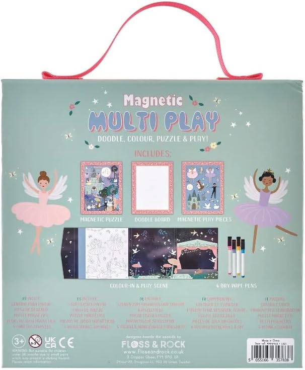 Doodle, colour, puzzle and play! The Magnetic Multi Play is the ultimate multidimensional game, with 4 different activities to keep little ones entertained for hours. The case folds completely flat and comes with a handy carry handle, this super cool case is perfect for traveling and taking out and about and its reusable over and over again. Perfect for traveling and taking out and about. Portable game with carry handle.