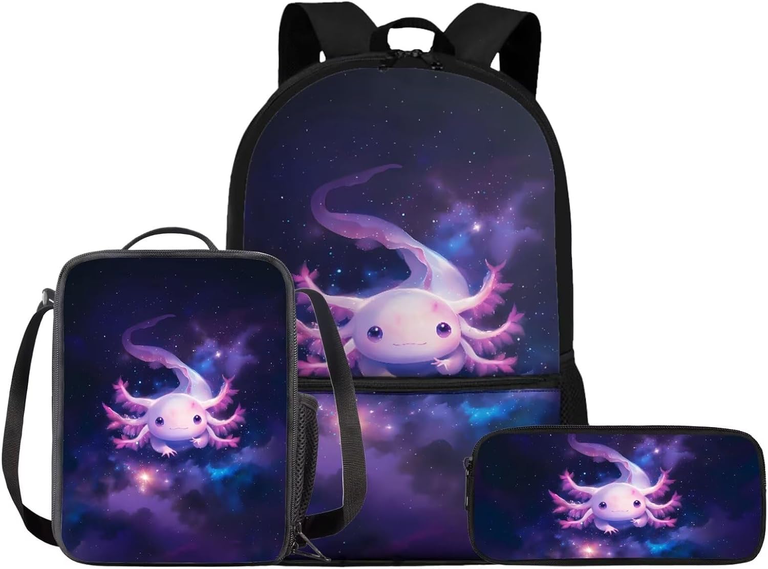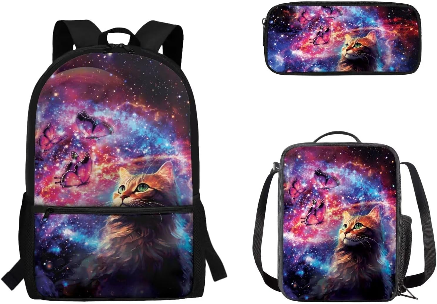 Features Our fashion kids backpack with pencil case and lunchbox are made of premium polyester,It can be used for a long time and not easy to fade away and split.the food handbag has aluminum film inner, which can keep food fresh longer, it is greasy proofing and with a removable strap to satisfy your own need,zip fastener design makes your food stay in place. It is a ideal learning companion for your kids to hiking, go camping,traveling or other outdoor activities 3 PCS set is super convenient to carry lunch containers, snacks,papers,books,umbrella,Insulated bottle,cutting tools,crayons,giraffe tools,and pencils, Erasers,rulers etc. Attractive patterns make your children look active and energetic. The lunch box designed with Insulated inside,it suitable for many occasions, such us work, iced, school,picnic.the pen bag can put pens, keys, also can be used either as a wallet or pencil case, suitable for high school or college girls daily use or travel Recommended for children over 3 years old. Customized Service We also provided customized service,if you or your kids have any favorite patterns, you can send it to us, we can also customized the name or picture of your children on the bag,make your kids has a personalized school bag and do not need to worry lose it!