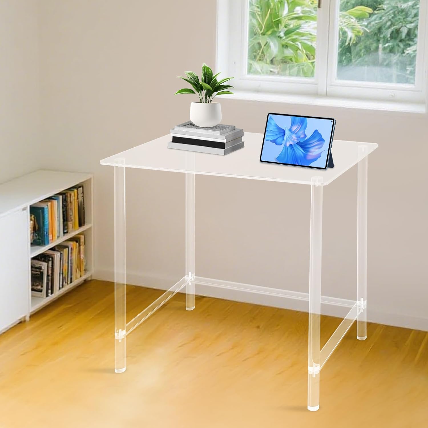 Our acrylic desk is made of acrylic and has a clear feature, which can add modernity and lightness to your space. It not only has a simple and elegant appearance, easy to match with various interior decoration styles, but also has a stable structure, suitable for various occasions such as learning and work. In addition, it is easy to clean and maintain, making it an ideal choice for pursuing both fashion and practicality.SpecificationColor: ClearStyle: ModernMaterial: AcrylicProcess: Cutting, PolishingAssembly Required: YesInstallation Type: FreestandingMax. Load Capacity: About 40kg/88.18 lbsDesk Leg Diameter: 3.5cm/1.38inProduct Size: 75*50*80cm/29.53*19.69*31.5inPackage Size: 85*55*9.6cm/33.46*21.65*3.78inGross Weight: 12kg/26.46 lbsNet Weight: 11kg/24.25 lbsPackage Included1* Acrylic Desk1* Installation DiagramOther Accessories for AssemblyNotes1.Please check the size carefully before ordering.2.Please use the product within its weight capacity to avoid damage.