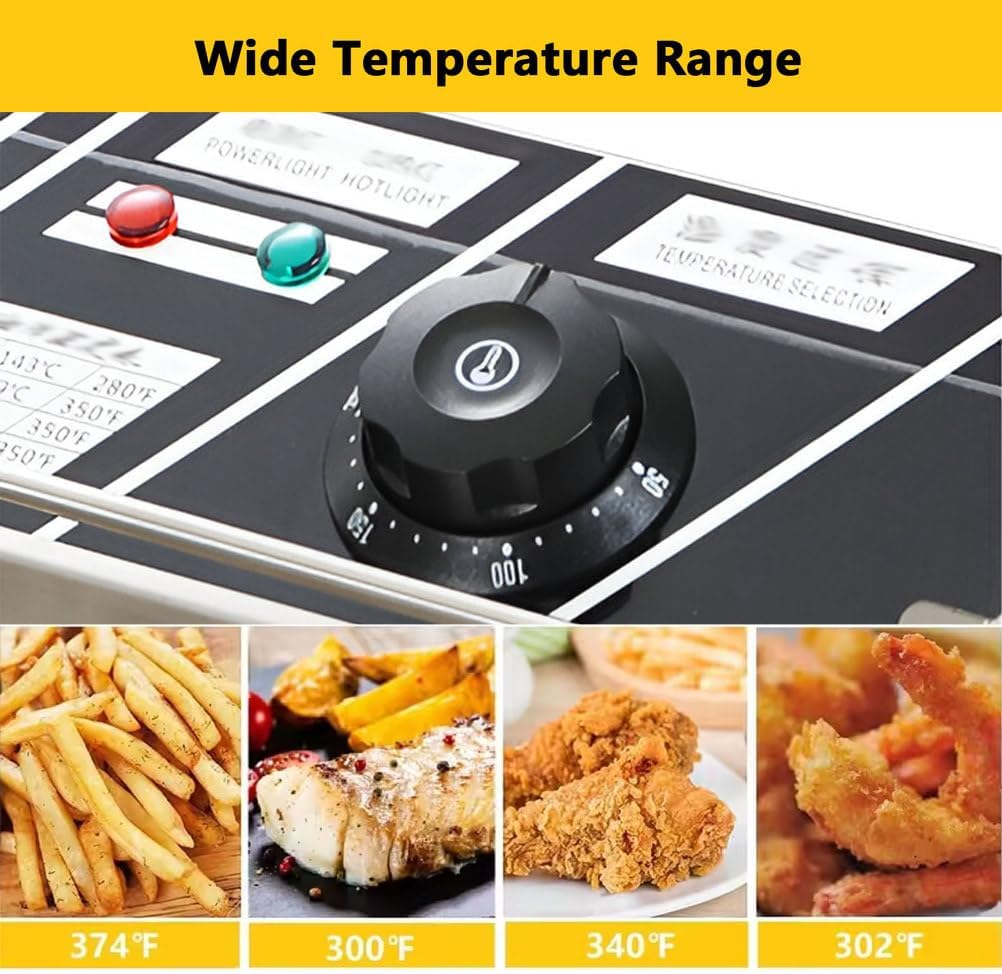 This deep fryer heats up quickly, ensuring quick and even frying of your favorite dishes. Its large capacity improves cooking efficiency and saves time, making it perfect for large gatherings or family dinners. This electric countertop fryer is ideal for both commercial and home cooking, such as restaurants, supermarkets, fast food stalls, snack bars, and parties. The frying pot allows you to easily prepare a variety of delicious fried foods, such as meat, seafood, French fries, cookies, and donuts.Product Name: Deep FryerMaterial: Stainless SteelPackage Includes:1 x Electric Deep FryerNote:1. Due to monitor and lighting effects, the actual product color may vary slightly from the image shown. Thank you!2. Due to manual measurement, please allow 1-3 cm error in measurement.