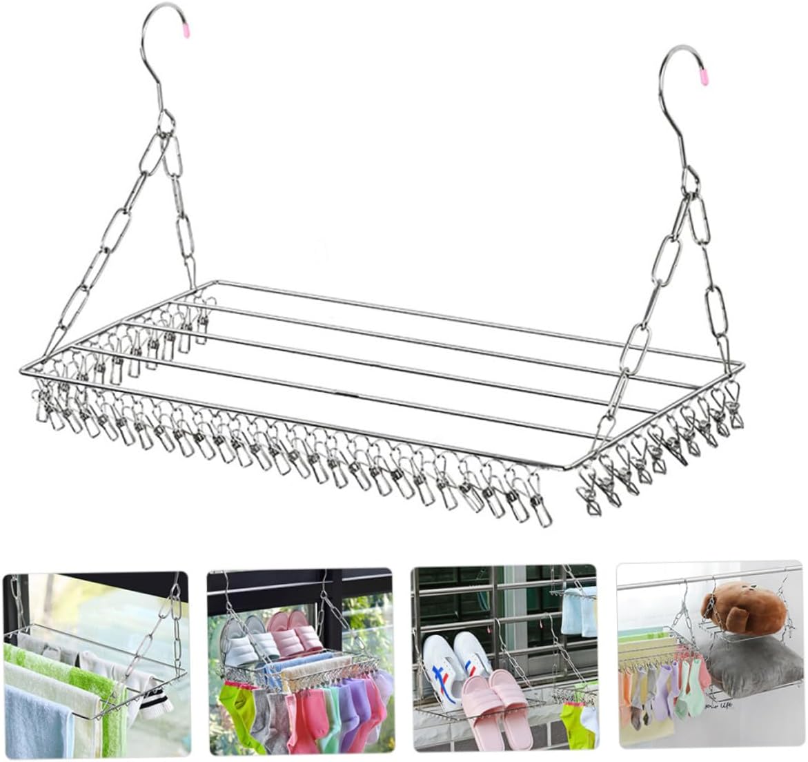Package List 1 x Drying Rack Features - Color: Silver. -Product Info:Balcony sock drying rack - Material: Stainless steel. - The movable buckle can be adjusted according to the need, so that the object surface is stable clothing racks for drying clothes. - Stainless steel frame forming in one body, high elasticity and easy to pinch clothes dry rack. - With this item, it can bring much convenience in your life clothes drying racks. - A variety of hanging methods can be adjusted at will laundry drying rack. - Thickened solid stainless steel, solid welding, no deformation multi-functional drying rod. - Multi-functional shelving, can store pants, towels, shoes, potted plants and other items, hanging at will pant hanger.Goods Informationpants hangers Are you looking for a professional, yet drying rack? Are you in search of a sturdy, trustworthy drying rack that can do multiple jobs at once? , ! Our professional drying rack must meet your need.clothes drying racks It is the for you