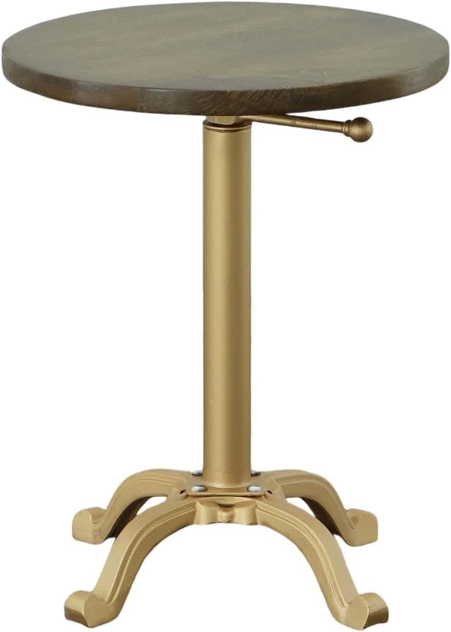 Elevate your home with the Carolina Chair & Table Colton Adjustable Vintage Coffee Table, expertly crafted to combine style, durability, and versatility. Featuring a solid natural driftwood round tabletop with a smooth 0.5-inch thickness, this end table offers a warm, rustic appearance. Its ornate metal pedestal base, finished in powder-coated aged iron, provides sturdy support while delivering an elegant vintage charm. The adjustable height mechanism allows the table to extend from 22 inches up to 33 inches, adapting seamlessly to your needs whether as a coffee table, side table, or workspace. Measuring 18 inches in diameter, its compact size fits perfectly in living rooms, dining areas, offices, or cozy apartments. The lightweight 20-pound construction ensures easy portability, while the rust-resistant finish ensures durability. Maintenance is effortless, simply wipe with a dry cloth to keep it pristine. With straightforward assembly instructions included, the Colton elegant table is a sophisticated and functional addition to any space.FEATURES:Adjustable height from 22 to 33 inches for flexibilitySolid natural driftwood round tabletop, 0.5 inches thickThe ornate leg design adds vintage elegance and charmCompact 18" diameter fits small and large spacesLightweight 20-pound design for easy movingRust-resistant finish ensures long-lasting useSimple assembly with included step-by-step guidePowder-coated aged iron pedestal base for durabilityEasy-to-clean surface maintains the natural wood lookPerfect for living room, dining room, office, and kitchen