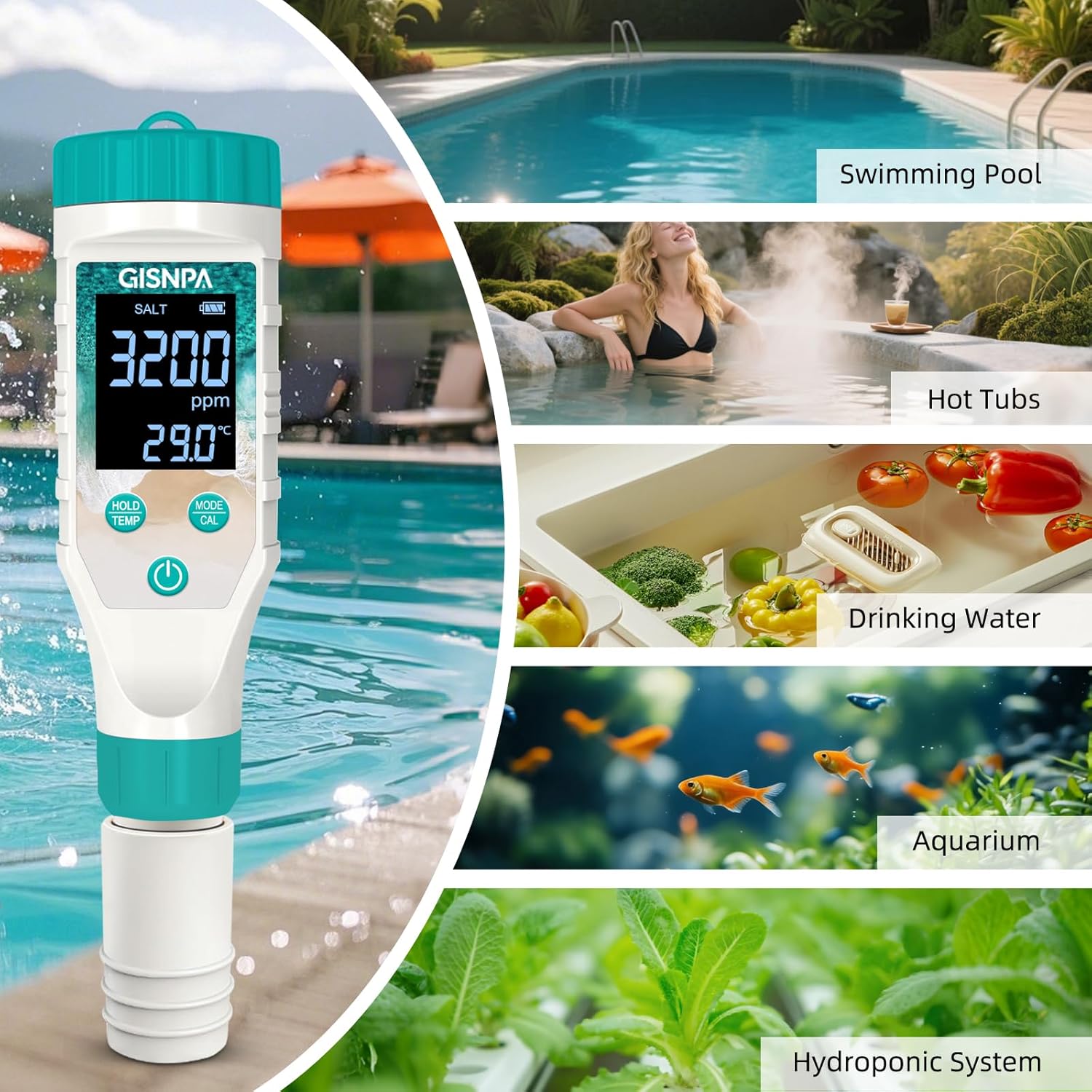 | Recommended Uses For Product | Aquarium, Chlorine Test, EC Test, Hot Tub, Salt Test, Spa, Swimming Pool, TDS Test, Temperature Test, Water Test, pH Test |
