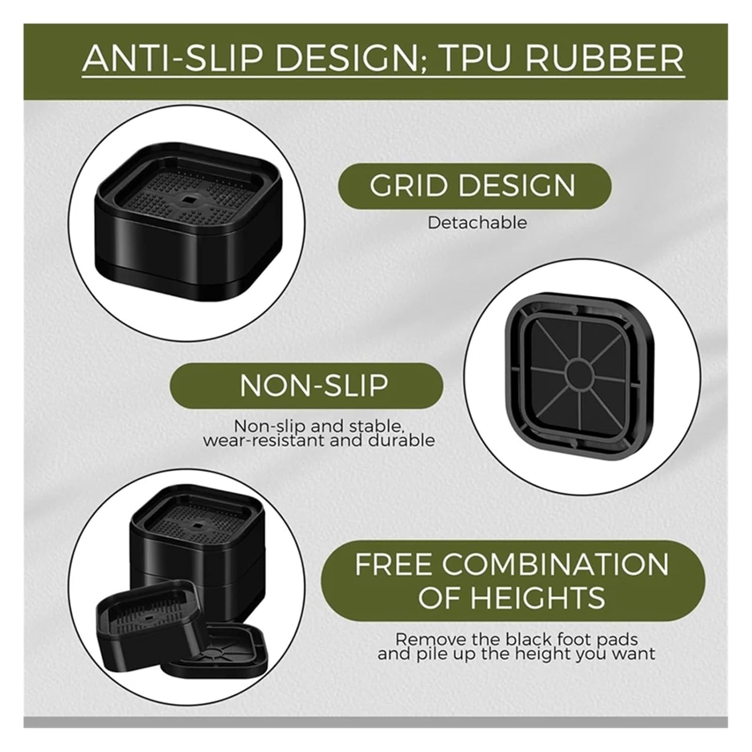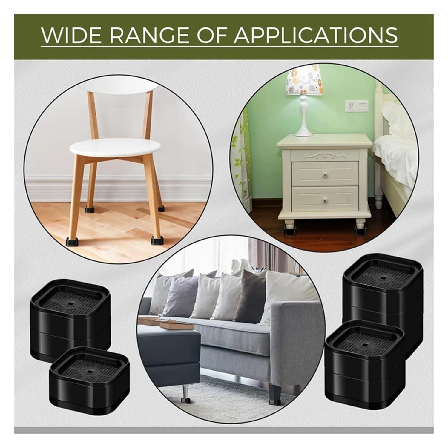 Material: plasticcolour: BlackPackage Contents: 16 x Stackable bed risersOnly the above package content, other products are not included.Note: / reflection and different displays may cause the color of the item in the picture a little different from the real thing. The measurement allowed error is +/- 1-3cm.