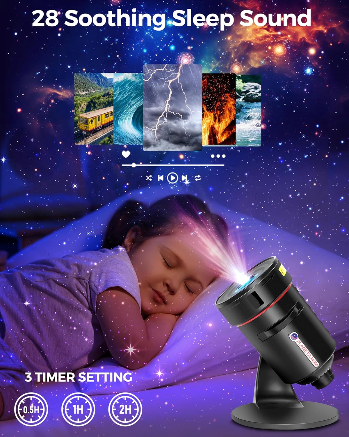 | Additional Features | 2-in-1 Device, 2-in-1 Galaxy Projector & White Noise Machine, 28 Soothing Sounds, Mesmerizing Starry Projections |