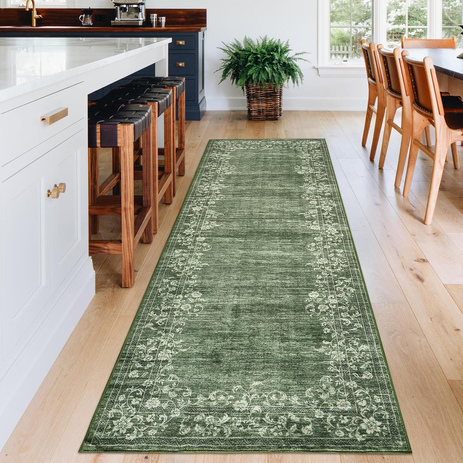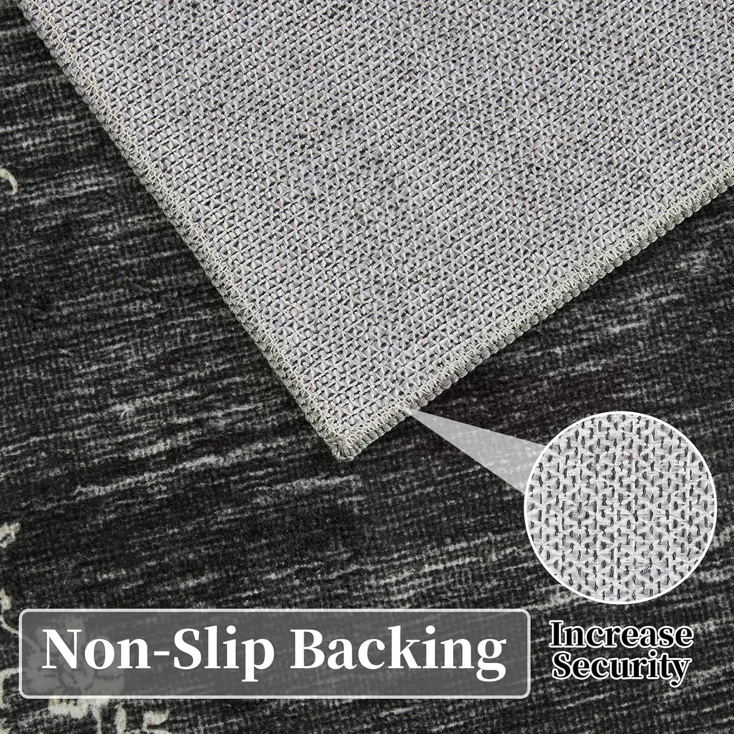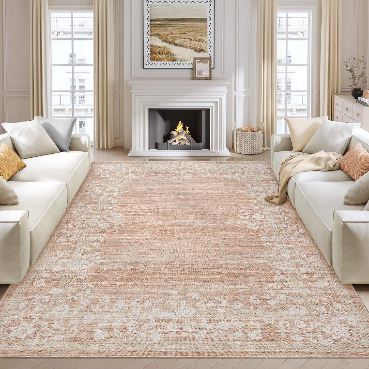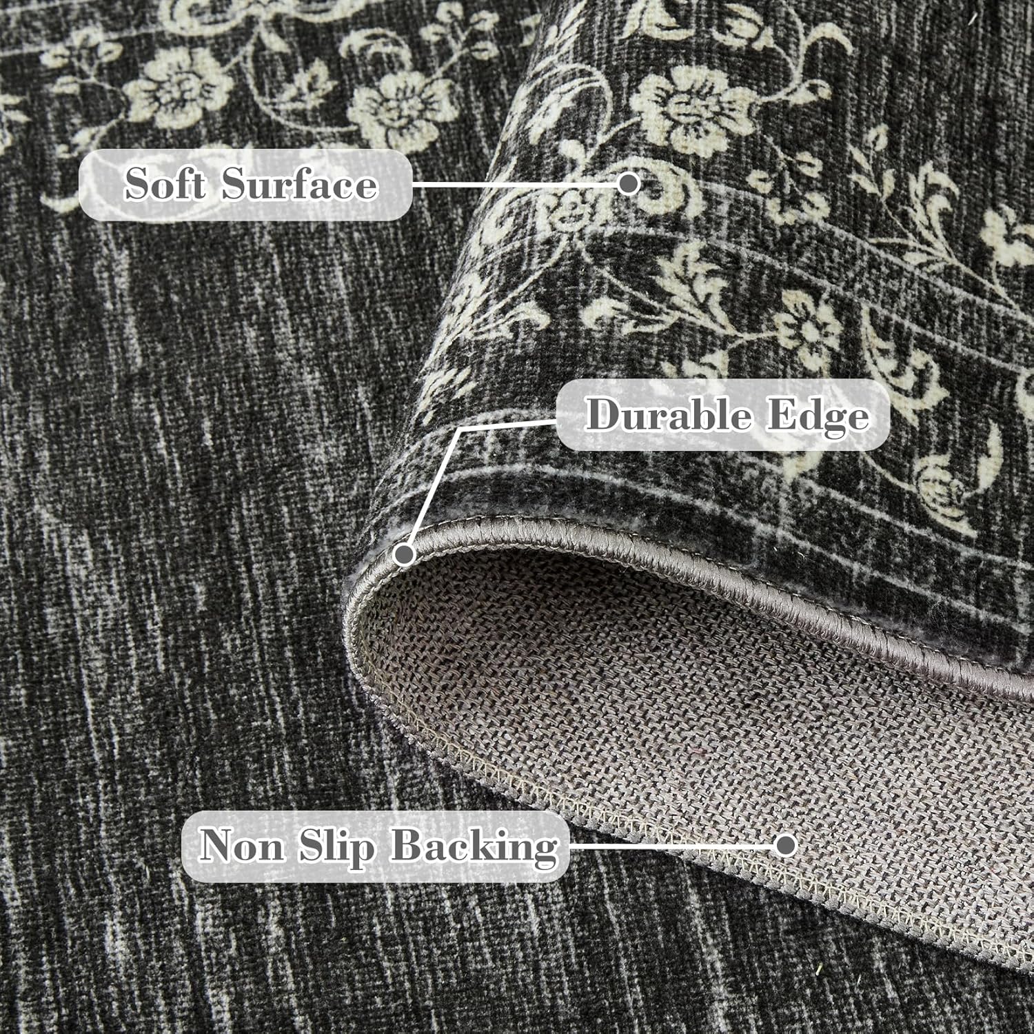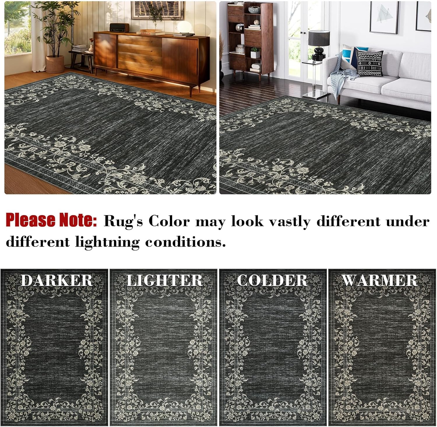 Floral Bordered Washable Rug for Living Room with Non-Slip BackingHighlights at a Glance:- Vintage area rug adds artistic flair to your living space.- Unique bordered floral print enhances the warmth of any room.- Ultra-thin design fits seamlessly under furniture and doorways.- Durable synthetic fibers offer luxurious softness and longevity.- Washable rug allows for hassle-free maintenance and cleaning.- Anti-slip backing ensures safety in busy households with pets.- Versatile use in living rooms, bedrooms, and dining areas.- Perfect gift for family and friends, combining art and utility.Specification:Material: 100% polyester, the rug backing was coated with TPRSize(Ft): 2x6 / 5x7 / 8x10 / 9x12 / 10x13Packing List:Rug x 1Friendly Note:1. Simply wipe local stains with a wet rag and use a vacuum cleaner for daily maintenance.2. Deep cleaning is also possible, with the option to machine wash the rug, ensuring it remains fresh and clean.3. When you first get the carpet, you may notice some wrinkles or folds, but don't worry! Simply lay it flat on the floor and the creases will naturally disappear. You can use it with peace of mind learning that this is a normal process.