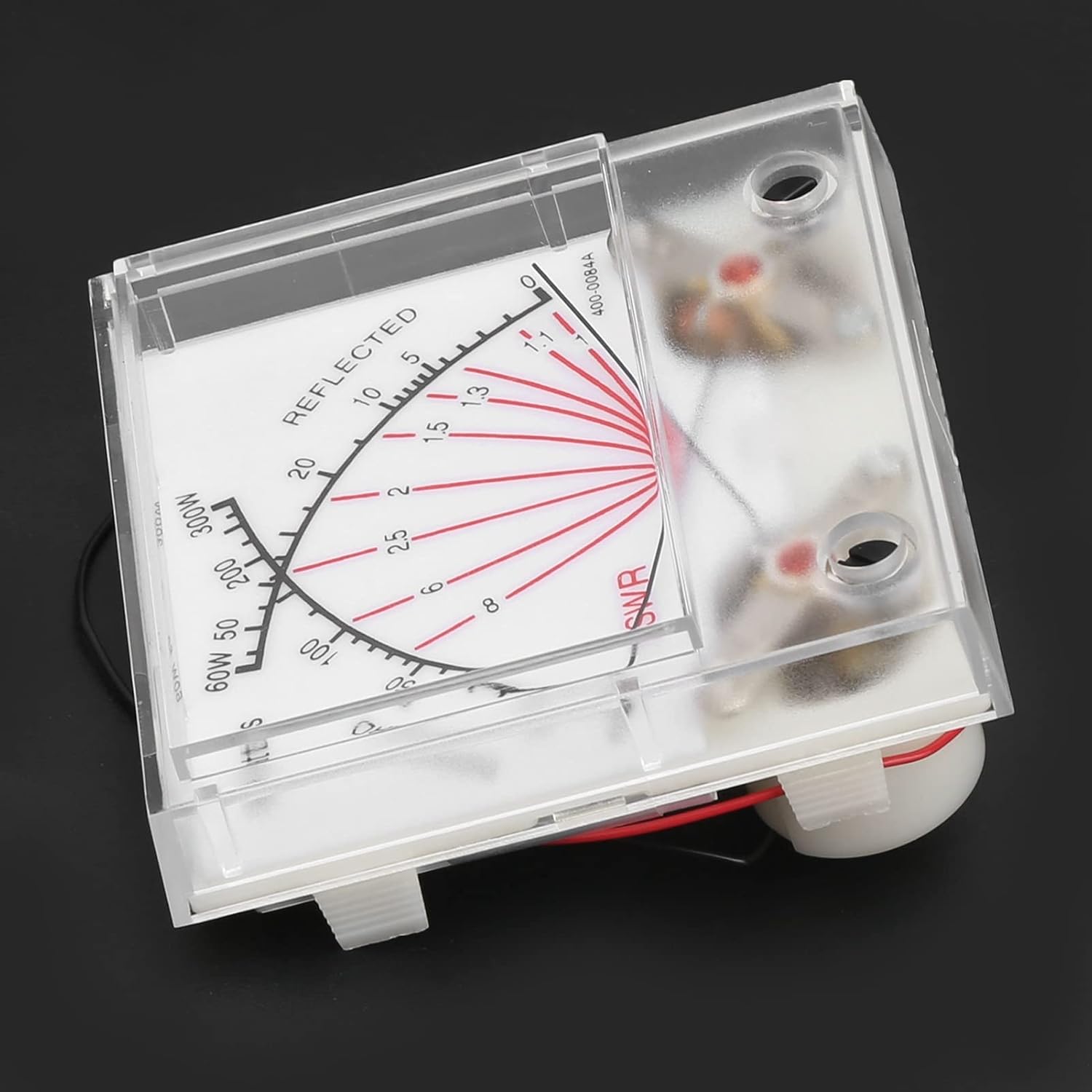 Feature:1. Equipped with backlight, convenient for reading. The display can be clearly seen even at night.2. Adopts high quality ABS material, and sturdy, ‑ shock, can be used for a long time.3. Equipped with pointer dial, high accuracy, can directly display the measurement results。4. The test range is wide, 60/300W power test, the maximum current sensitivity is 200uA±8%.5. The control layout is convenient and the operation is simple. The electric meter is installed vertically.Spec:Item Type: SWR Power MeterMaterial: ABSColor: As shown in the pictureMaximum Current Sensitivity: 200uA±8%Internal DC Impedance: 750Ω±8%Insulation Resistance: 50MΩFriction: ±1mm / 0.04inPointer Length: 49mm / 1.93in±1mm / 0.04inPointer Width: 0.45mm / 0.02in±0.05mm/0.002inPointer Swing Direction: From left to rightMeter Installation Position: VerticalBacklight Board: White backgroundBacklight: White lightType 1: Two LEDs in series "6V, 20mA", connect a resistor, 620Ω1/2WType 2: Two LEDs in series "6V, 20mA", connect a resistor, 1.3KΩ1/2WPackage List:1 x SWR Power Meter