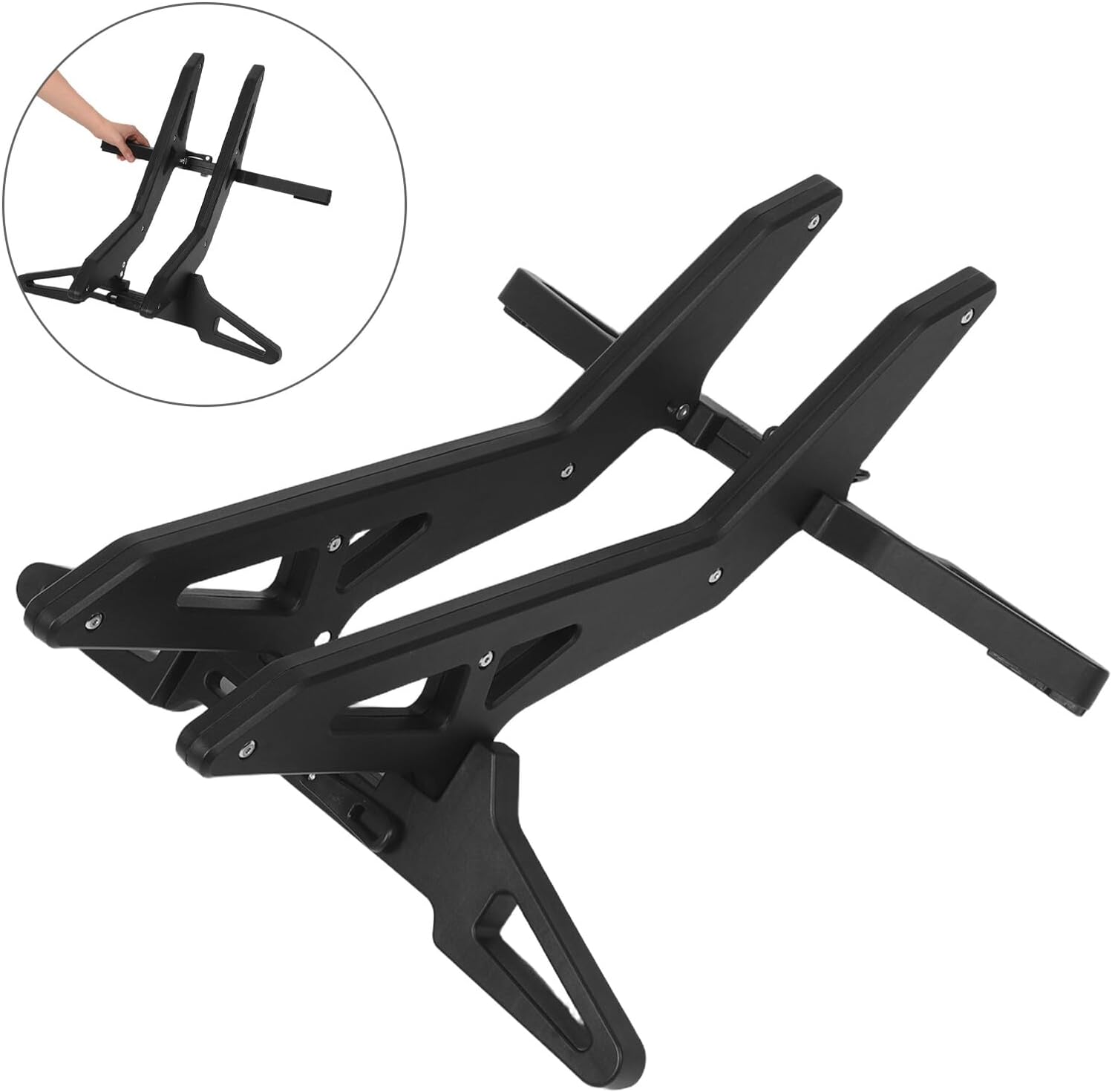 Package List 1 x bicycle parking stand Features -Size:41.50X21.00X16.50cm/16.31X8.25X6.48in -Solid base: a sturdy base ensures your bike remains stable and secure during maintenance, preventing accidental falls and providing a reliable platform for repairs bike parking stand -Flexible adjustment: the stand's adjustable design accommodates both road and mountain bikes, offering flexibility to suit different bike models and sizes -High weight capacity: built to support heavy loads, this stand can handle various bicycle weights without deforming, ensuring longterm durability and performance mountain bike stand -Color:Black -Quick and easy setup: the stand features a quick and easy installation process that requires no tools, allowing you to set it up in minutes and start using it right away adjustable bicycle holder -Material:ABS -Product Info: bicycle parking rack -Spacesaving design: perfect for home use, this stand helps you save space by providing an efficient storage solution for your bicycle, keeping your living area organized bike rack standGoods Informationbike floor rack Whether for home use or professional settings, this bicycle maintenance rack meets the needs of cyclists by offering a dependable and adjustable platform.bike holder stand Its sturdy frame and ergonomic design make it suitable for parking, repairs, or display, ensuring your bike remains secure and accessible at all times