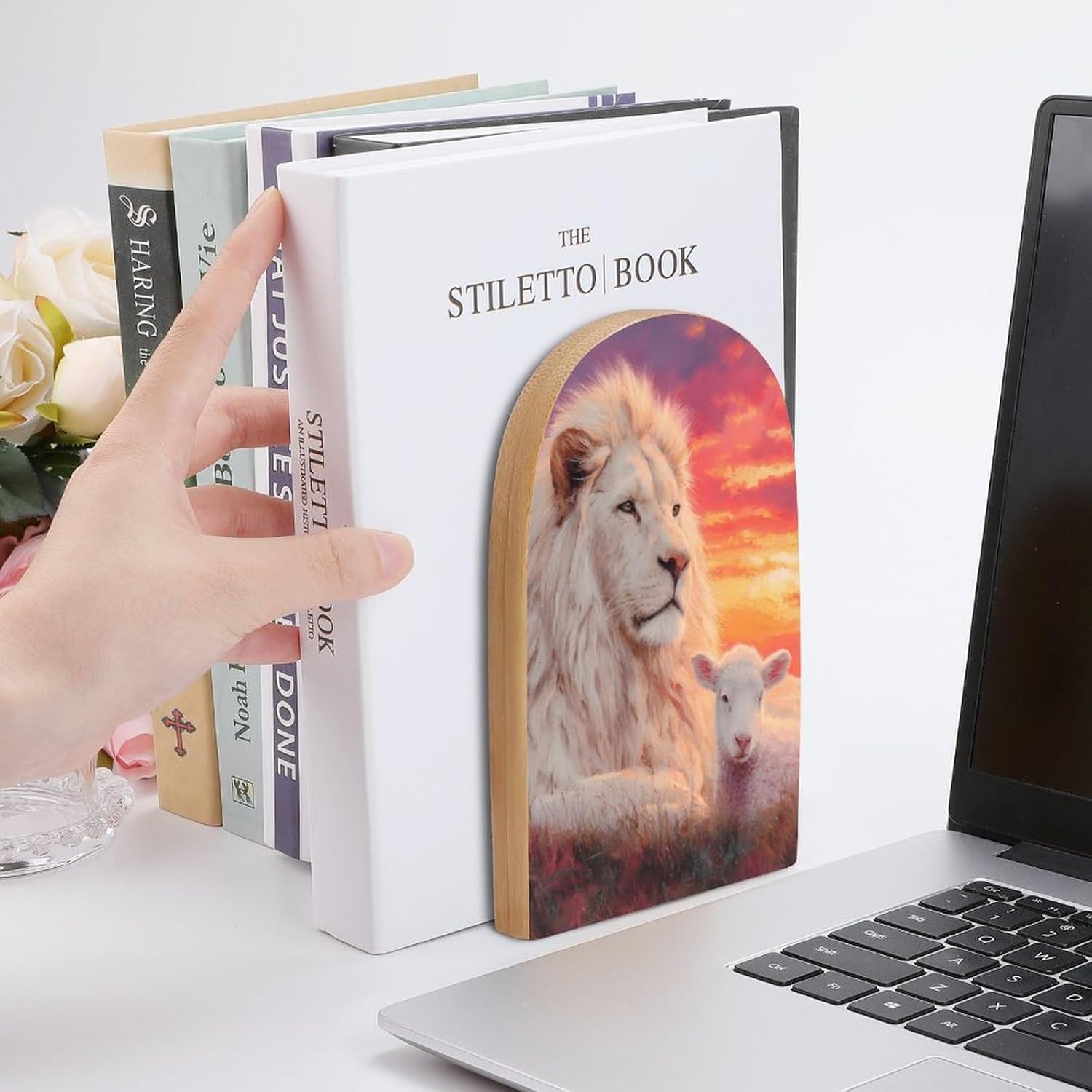 Custom Bookend Wood Book Ends for Shelves Cute Book Shelf Holder Home Decorative,the book end protect your bookshelf or furniture from scratching when you move the bookends