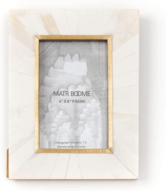 Showcase your favorite moments with the Matr Boomie Heart Picture Frame, handcrafted from ethically sourced bone tile in a soft cream hue and finished with elegant brass accents. Designed to hold a 3x3 photo, this charming frame features a heart-shaped design and a one-way tabletop easel for easy display on desks, shelves, or nightstands. Part of the Mukhendu Collection, it combines artisan craftsmanship with sustainable materials—making it a meaningful gift or a beautiful addition to a curated gallery wall.