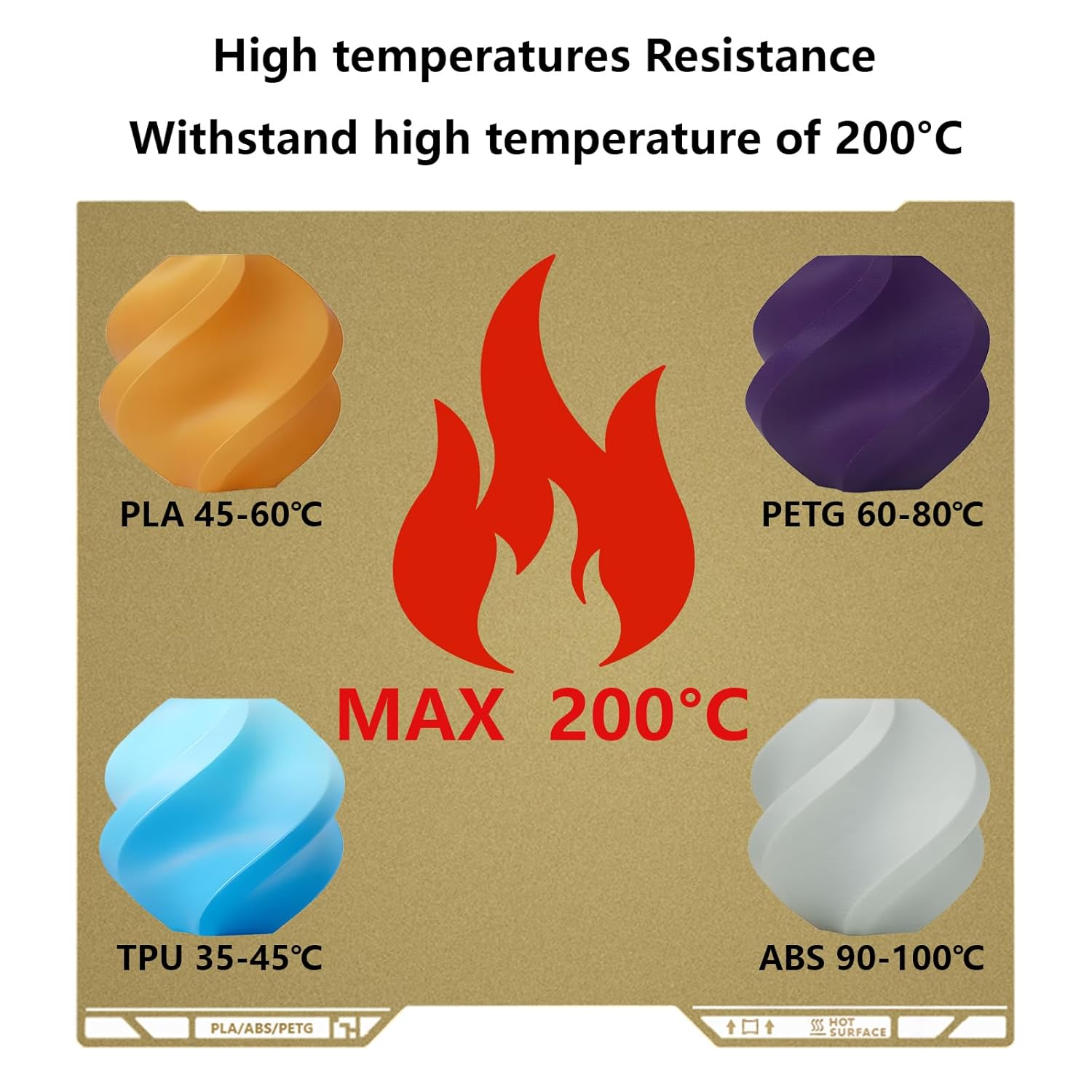 Excellent Heat ResistanceHigh Strength & Wear ResistanceEasy Model RemovalCompatible Models: for H2DPowder Coating: Double sided textured PElApplicable to most materials such as PLA, ABS, ASA, PETG, TPU, PC, PA etc