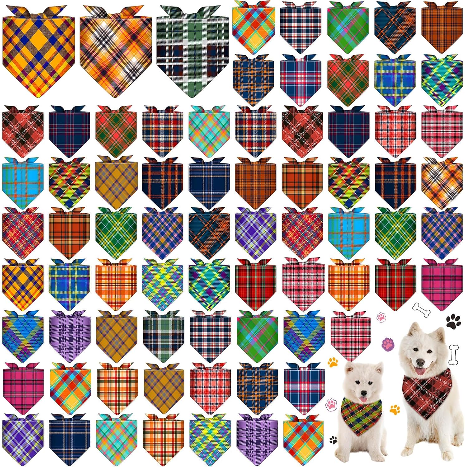 Features: This dog bandanas are made of polyester fabric, which is both soft and comfortable, yet sturdy. The fabric is breathable, lightweight, and washable, ensuring your pet stays comfortable at all times These dog bandanas in bulk are ideal for everyday wear and come in a variety of styles to suit your pet's personality, ideal for a variety of events such as holiday theme parties, family outings, photo sessions, birthdays or seasonal parties Specifications: Material: Polyester fabric Color: Multicolor Size: approx. 22.83 x 16.14 x 16.14 inches/ 58 x 41 x 41 cm Package includes: 72 X Dog Bandana Notes: Manual measurement, please allow slight errors on size. The color may exist a slight difference due to different screen displays.