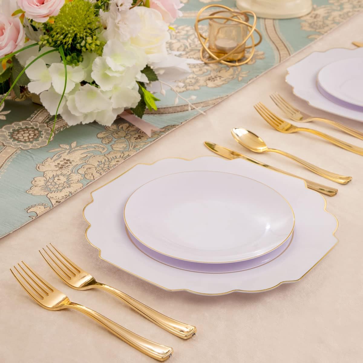 | Color | 150pcs White and Gold Plastic Dinnerware Set |