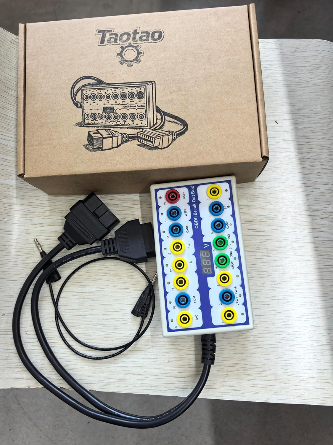 OBDII Protocol Detector & Break Out BoxOBDII Protocol Detector & Break Out Box mainly used car OBD line signal judgment and signal transfer. Using car fault diagnosis instrument can quickly determine car OBD signal receiving. Signal may not meet angle can take other signal transfer angle. Application is very convenient and solve risks across the line.Product Characteristics:1. In the process of using decoder, error can be found and diagnosed OBD connector link.2. You can monitor the OBD interface voltage and ground, showed low voltage. Display diagnostic stitching error.3. Jump for OBD interface signals. Signal lines such as decoder of 7 to 15 vehicles online.4. Rapid detection of OBD2 diagnostic connector whether every stitch of the normal communication.5. Replace the battery, save the car data function. When replace the battery, plug OBD2 connector into the car, at the same time connect additional power to the control box, so that ensure vehicle data is not lost.Packing list:1pc x Break Out Box interfacec 1pc x OBD pin cable