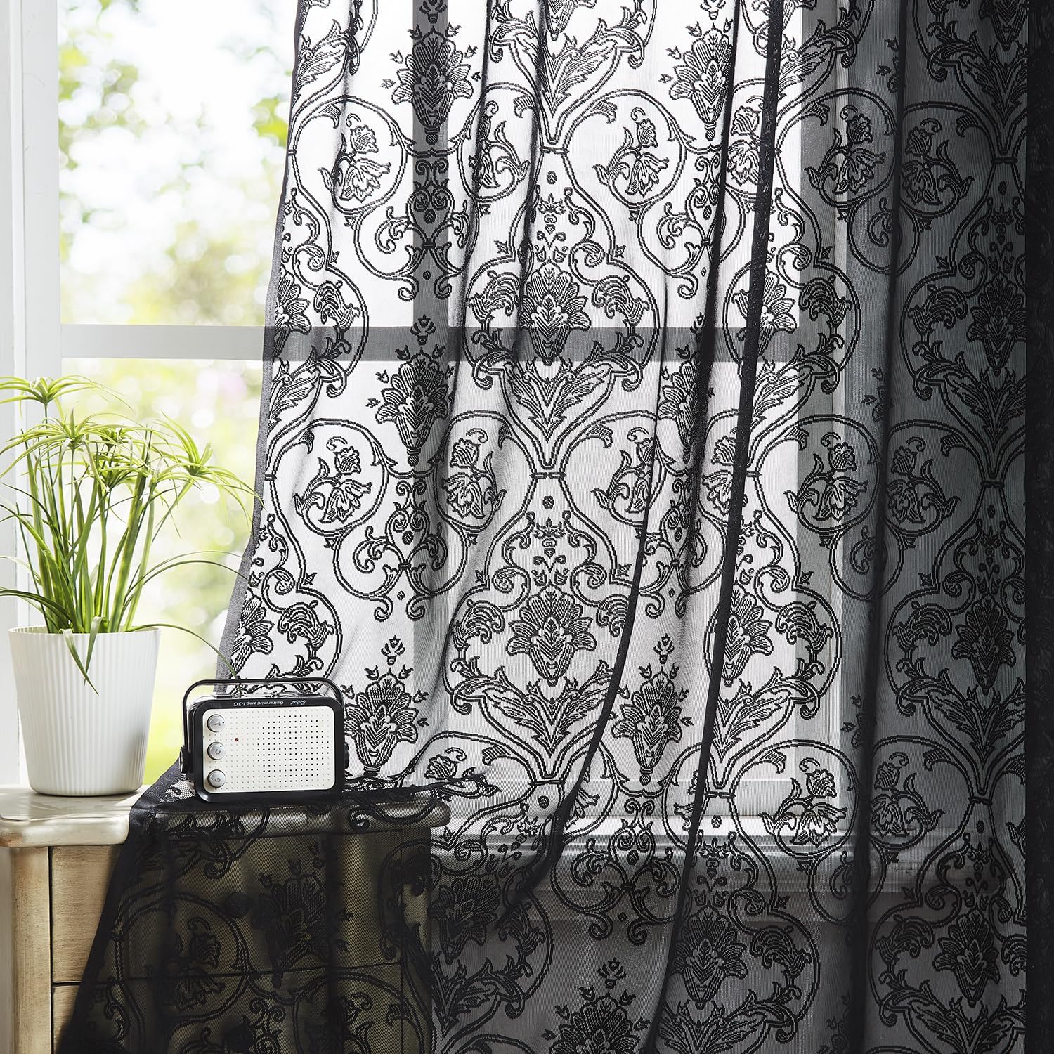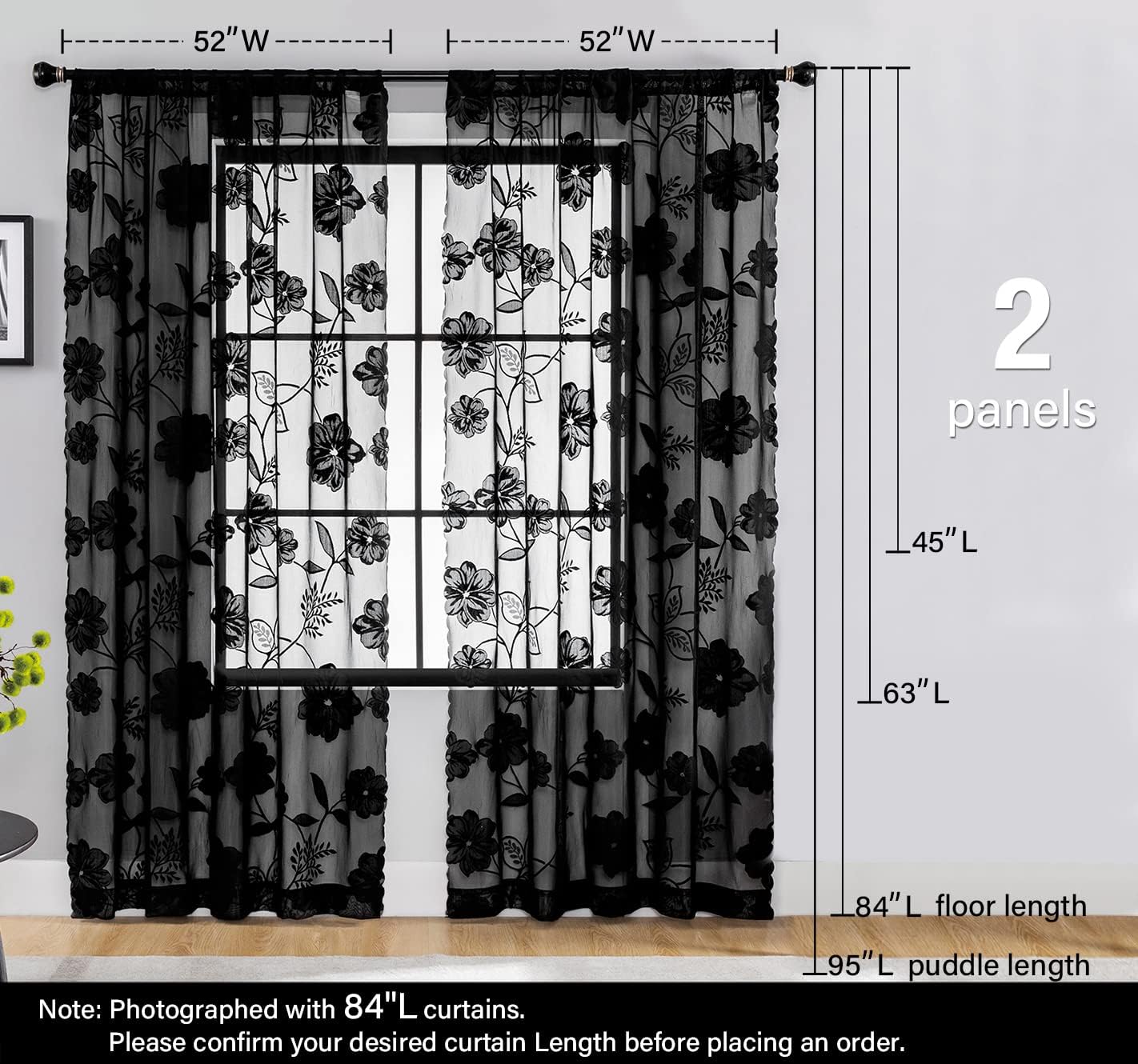 | Fabric Type | Premium Quality: Black Elegant Floral Leaf Lace Sheer Curtain |