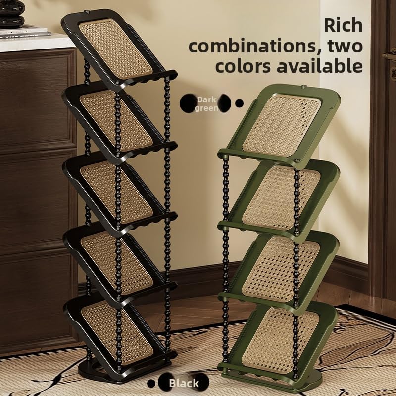 Transform your entryway with this vintage-inspired shoe rack featuring a space-saving inclined design. Perfect for narrow spaces, dorm rooms, and apartments, this versatile organizer offers customizable configurations from 2 to 7 tiers to meet your storage needs. The minimalist structure promotes optimal airflow while keeping footwear organized and easily accessible. Crafted with high-quality plastic in sophisticated vintage black or green finishes, this rack adds retro charm to modern living spaces. Assembly is a breeze with a tool-free snap-together system that completes in minutes. The sturdy construction supports multiple pairs of shoes while maintaining a slim profile, making it ideal for tight spaces. Each tier measures 11.8 inches wide, providing ample storage without overwhelming your space. The floor-mounted design ensures stability, while the open-back style maintains a light, airy appearance. Keep your shoes tidy and your entryway clutter-free with this practical and stylish storage solution.