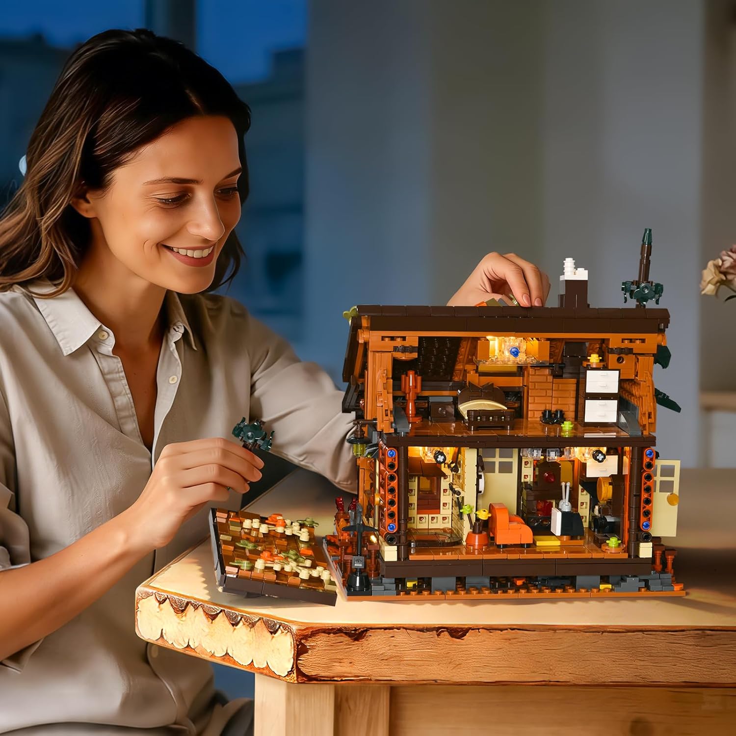 Unleash your creativity with our wood cabin building blocks set for adult! With 1969 precision-crafted building blocks, this set challenges teens and adults to construct a highly detailed cabin kit. Once assembled,its two-story desidn and built-in LED lights making it a captivating centerpiece for any room home decor. Perfect as an idea gift for hobbyists, collectors, or cabin enthusiasts.