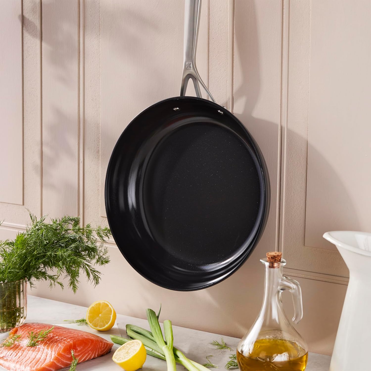 ZWILLING Motion Ceramic nonstick cookware merges the best of Italian design with expert German engineering. Enjoy the high performance of heavy-gauge,hard-anodized aluminum with the convenience of a slick ceramic nonstick coating. Inspired by the elegance of Italian architecture, ZWILLING Motion Ceramic blends quality craftsmanship with modern innovation. Crafted with thoughtful, streamlined details, Motion cookware delivers exceptional performance that lasts. The Ceraforce ceramic nonstick coating is a revolutionary coating designed with responsible materials and is made without the use of PFAS, PFOA, PTFE, lead, and cadmium. The innovative nonstick technology minimizes the need for cooking oil so you can create healthier meals. The durable, heavy-gauge, hard-anodized aluminum construction delivers even heat distribution for exceptional cooking performance. The double-rivet stay-cool handles are designed for easy maneuverability and perfect balance. Dishwasher safe, ZWILLING Motion Ceramic is also easy to clean, making this simple-to-use cookware a pleasure to cook with.